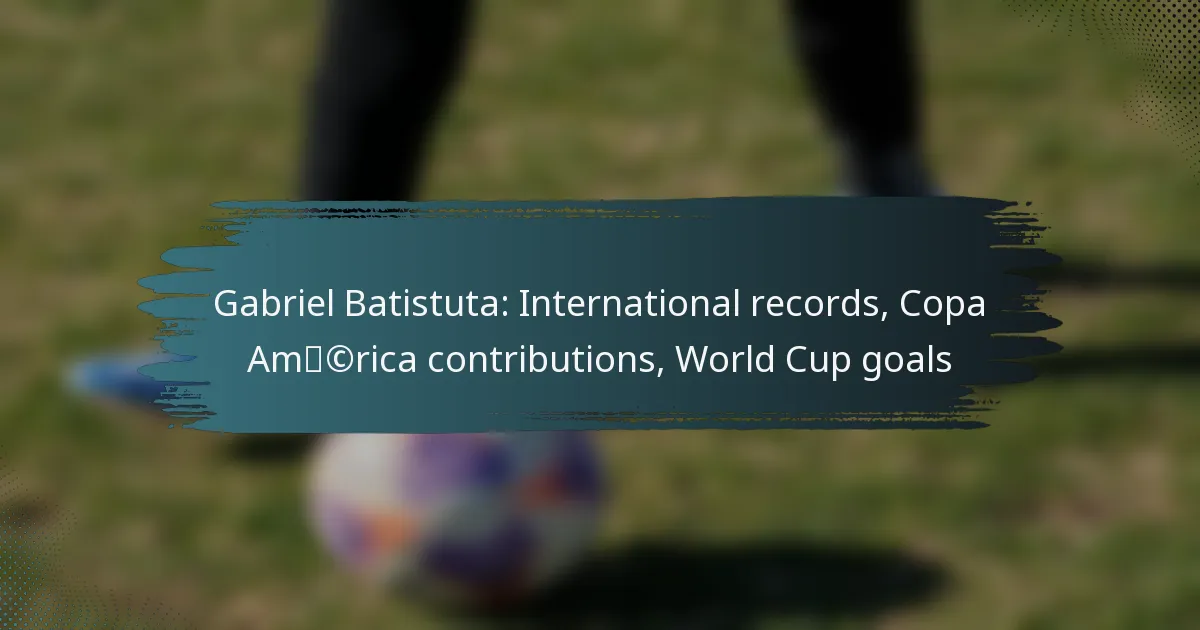Gabriel Batistuta is renowned for his impressive international records with the Argentina national team, where he made significant contributions in terms of goals and appearances. His legacy includes a remarkable goal-scoring record and notable achievements in major tournaments like the Copa América and the FIFA World Cup.